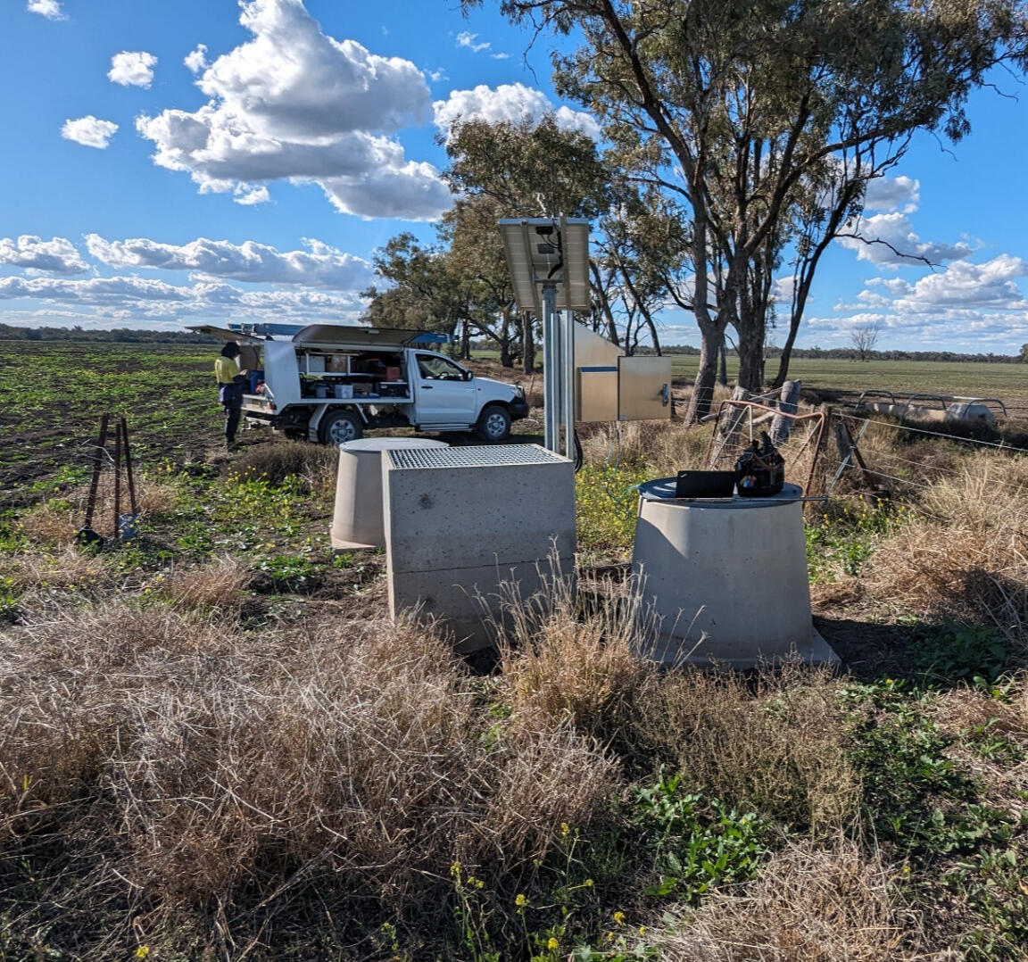 Left & Right: Remote water metering & data telemetry (1 of 20 sites) on a bore cap water supply system in NW NSW.